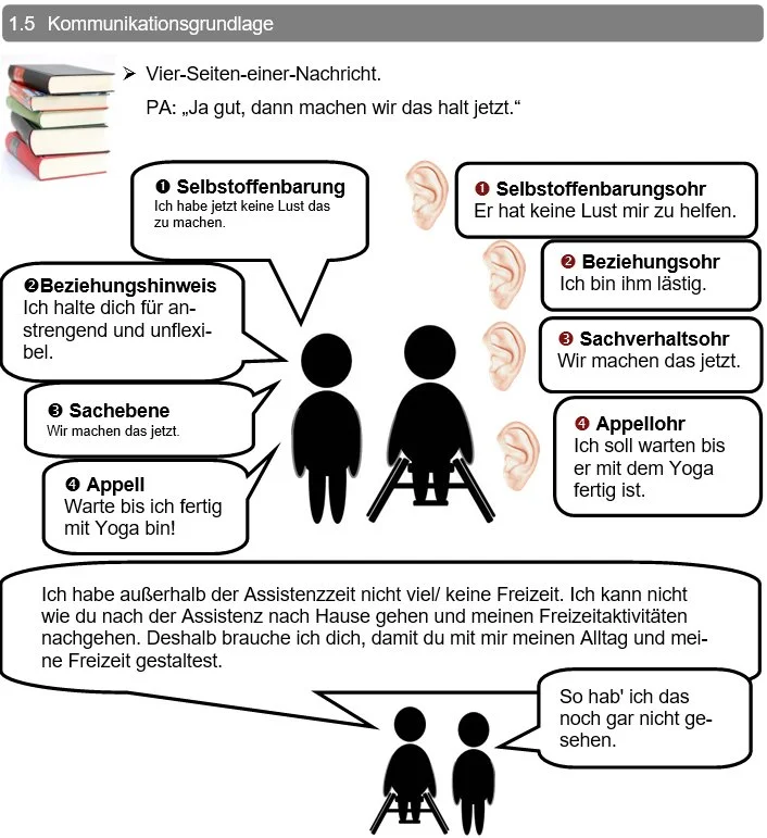 Wer zur Erfüllung seiner Wünsche und Bedürfnisse auf die Hilfe anderer angewiesen ist, muss in besonderem Maße kommunizieren. Menschen mit Behinderung sind auf die Hilfe ihrer persönlichen Assistenten angewiesen, um ihr Leben selbstbestimmt gestalten zu können. Körperhygiene, Arbeiten, Freizeitaktivitäten etc. sind, je nach Grad der Behinderung, nicht ohne fremde Hilfe möglich, sodass es für die Zusammenarbeit zwischen Klienten und Assistenten unerlässlich ist, Wünsche, Bedürfnisse, Möglichkeiten und Grenzen klar zu äußern. Wird bei diesen Themen nicht klar kommuniziert bzw. aufmerksam zugehört, kann es dazu kommen, dass man nicht weiß oder sich unsicher ist, welches Verhalten nun in welcher Situation erwünscht und angemessen oder eben unerwünscht und unpassend ist. Dieses Unwissen bzw. diese Unsicherheiten im Verhalten können zu kritischen Situationen führen, die Grenzüberschreitungen und Konflikte nach sich ziehen können.