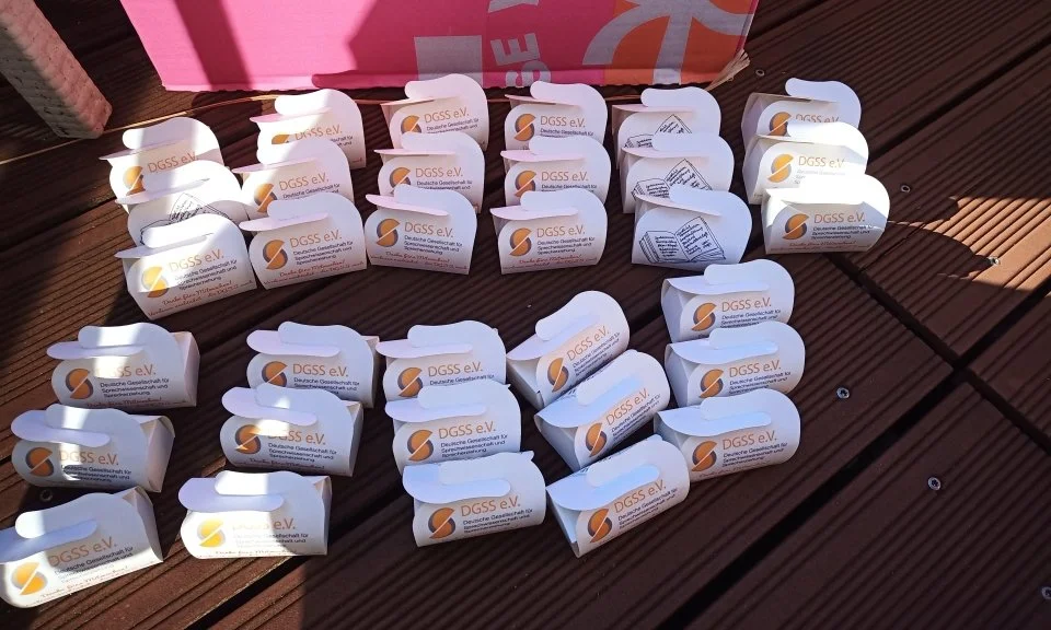 Als kleine zusätzliche Gabe für diejenigen DGSS-Mitglieder, die beim Vorlesetag mitgemacht haben, wurden diesmal sowohl die bekannten DGSS-Postkarten sowie ganz neue, süße DGSS-Vorlesetag-Dankeschön-Schokoladen verschickt (Foto Trischler 2, evtl. Trischler 4).
